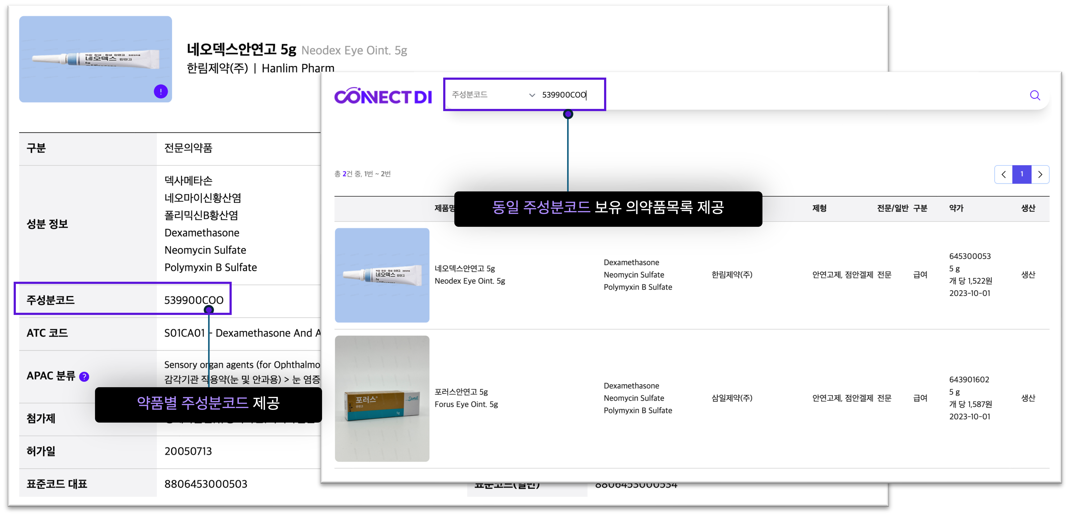 ๊ฐ์ ์ฃผ์ฑ๋ถ์ฝ๋๋ฅผ ๊ฐ์ง ๋์ฒด ๊ฐ๋ฅํ ์์ฝํ ๋ชฉ๋ก์ ํ์ธํ ์ ์๋ ์๋น์ค๋ ์ ๊ณตํ๊ณ ์๋ต๋๋ค. ์ด ๋ฐ์ดํฐ๋ API๋ก๋ ์ด์ฉํ ์ ์์ผ๋, ํ์ํ์๋ฉด ์ธ์ ๋ ์ง ํ์ฉํด ๋ณด์ธ์!